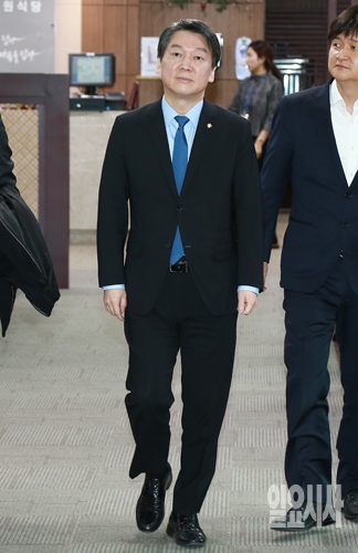 무소속 안철수 의원이 7일 오후 서울 여의도 국회의원회관에서 무소속 김한길 의원과 오찬회동을 갖기 위해 이동하고 있다.