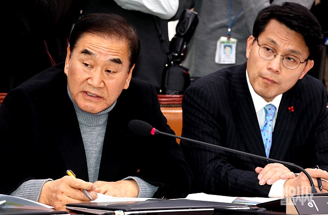 7일, 서울 여의도 국회서 열린 북한 수소폭탄 실험 발표 관련 긴급 현안보고에서 새누리당 이재오 의원이 윤병세 외교부장관에게 질의하고 있다.