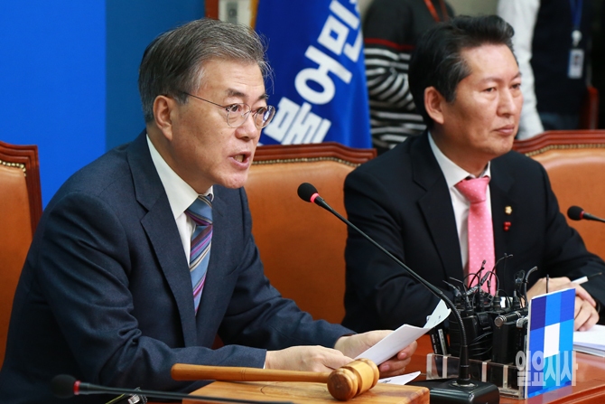 문재인 더불어민주당 대표가 8일 오전 서울 여의도 국회에서 열린 더불어민주당 최고위원회의에서 모두발언을 하고 있다.