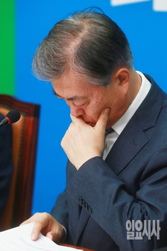 문재인 더불어민주당 대표가 8일 오전 서울 여의도 국회에서 열린 더불어민주당 최고위원회의에서 생각에 잠겨 있다.