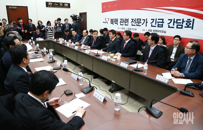 김정훈 새누리당 정책위의장이 8일 오전 서울 여의도 국회에서 열린 북핵 관련 전문가 긴급 간담회에서 인사말을 하고 있다.