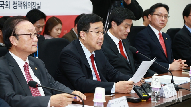 김정훈 새누리당 정책위의장이 8일 오전 서울 여의도 국회에서 열린 북핵 관련 전문가 긴급 간담회에서 인사말을 하고 있다.