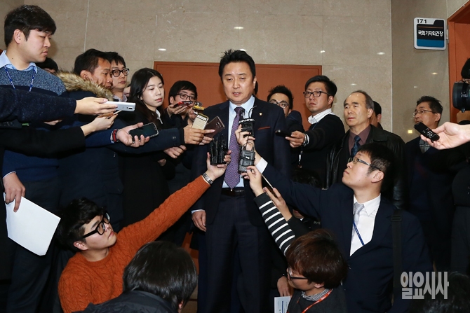 김영환 더불어민주당 의원이 8일 오전 서울 여의도 국회 정론관 기자회견장에서 탈당 기자회견을 마친 후 기자들의 질문에 답변하고 있다.