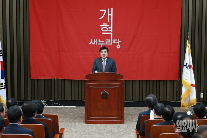 원유철 새누리당 원내대표가 8일 오후 서울 여의도 국회에서 열린 새누리당 의원총회에서 발언을 하고 있다.
