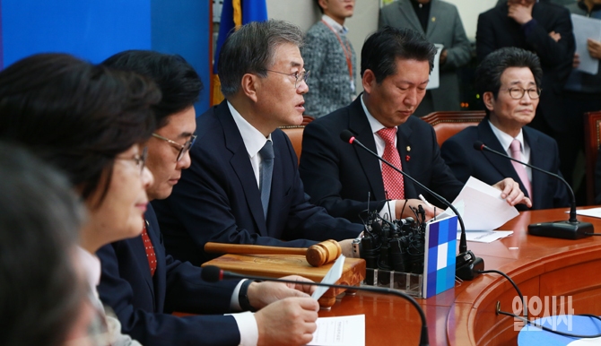 문재인 더불어민주당 대표가 18일 오전 서울 여의도 국회에서 열린 더불어민주당 최고위원회의에서 모두발언을 하고 있다.