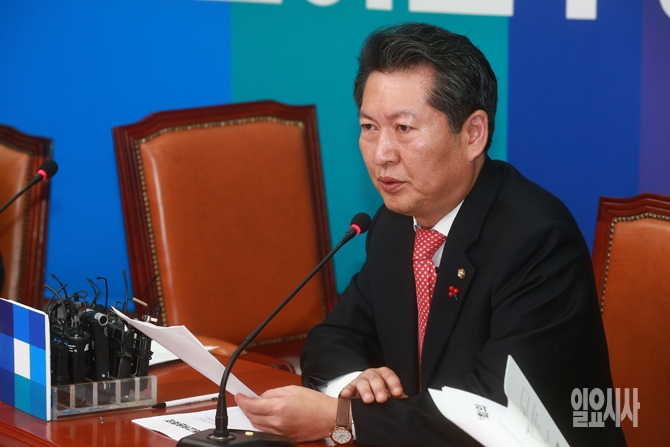 정청래 더불어민주당 최고위원이 18일 오전 서울 여의도 국회에서 열린 더불어민주당 최고위원회의에서 모두발언을 하고 있다.