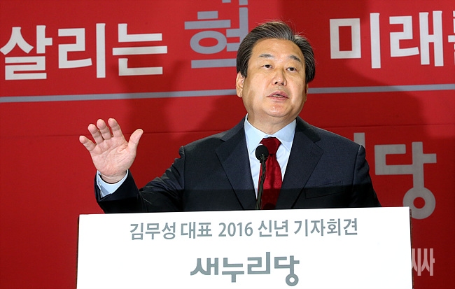 18일, 서울 여의도 국회서 새누리당 김무성 대표가 2016 신년 기자회견을 갖고 있다.