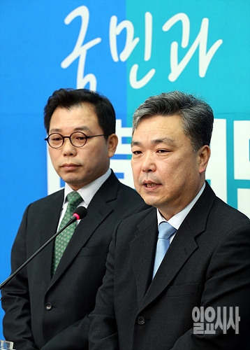 18일, 서울 여의도 국회 더불어민주당 대표실에서 김민영 전 참여연대 사무처장(사진 오른쪽)과 오성규 전 서울시 시설관리공단 이사장이 입당 기자회견을 갖고 있다.