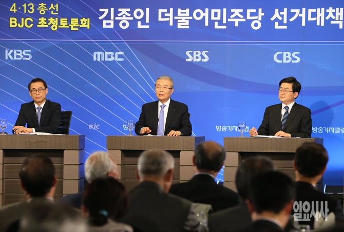 6일, 더불어민주당 김종인 선거대책위원장이 서울 종로구 세종문화회관서 열린 방송기자클럽 초청 토론회에 참석해 기자의 질문에 답변을 하고 있다.
