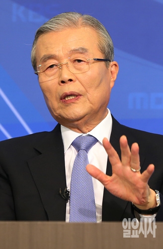 6일, 더불어민주당 김종인 선거대책위원장이 서울 종로구 세종문화회관에서 열린 방송기자클럽 초청 토론회에 참석해 기자의 질문에 답변을 하고 있다.