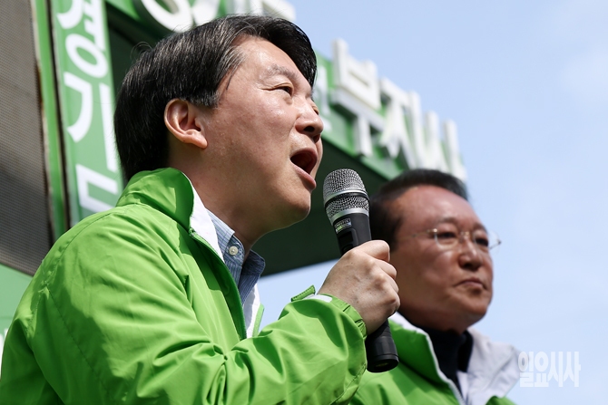 7일 오전 경기도 남양주시 진접읍 진접농협 앞에서 표철수 국민의당 후보의 지원유세에 나선 안철수 국민의당 공동대표가 유권자들에게 지지를 호소하고 있다.