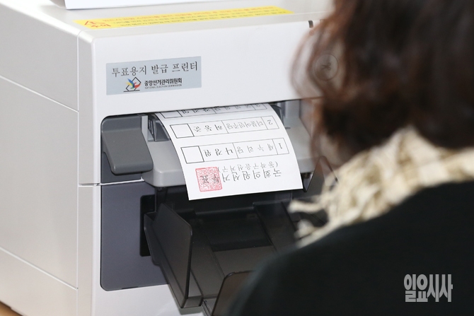 제20대 국회의원선거 사전투표 시작일인 8일 오전 서울역에 설치된 사전투표소에서 투표용지가 인쇄되고 있다.