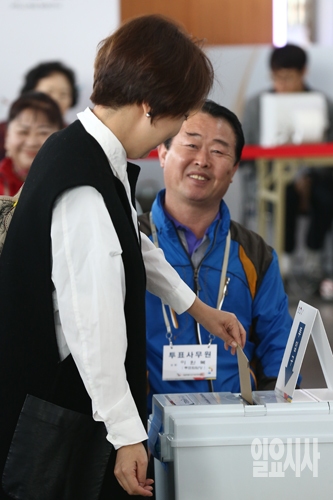 제20대 국회의원선거 사전투표 시작일인 8일 오전 서울역에 설치된 사전투표소를 찾은 유권자가 투표함에 투표를 하고 있다.