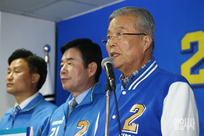 4.13 총선이 이틀 앞으로 다가온 가운데 11일 오전 경기도 수원시 장안구 더불어민주당 경기도당 회의실에서 김종인 더불어민주당 비대위 대표가 대국민 성명 발표를 갖고 있다.