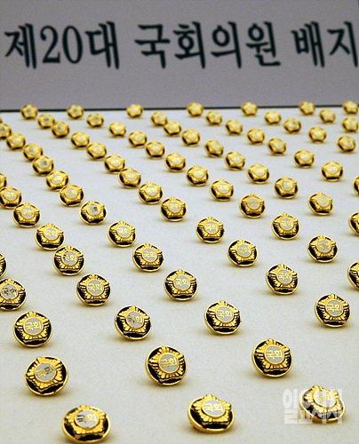 4·13총선을 이틀 앞둔 11일, 서울 여의도 국회 의원식당에서 20대 국회의원 배지가 언론에 공개되고 있다.