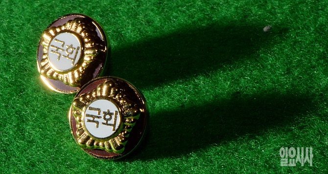4·13총선을 이틀 앞둔 11일, 서울 여의도 국회 의원식당에 20대 국회 배지가 언론을 통해 공개되고 있다.
