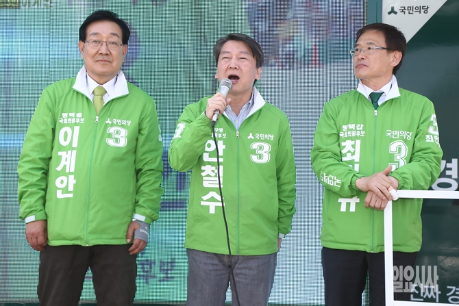 4.13 총선이 이틀 앞으로 다가온 가운데 11일 오전 경기도 평택시 평택역 앞 광장에서 국민의당 최인규, 이계안 후보의 지원유세에 나선 안철수 국민의당 공동대표가 유권자들에게 지지를 호소하고 있다.
