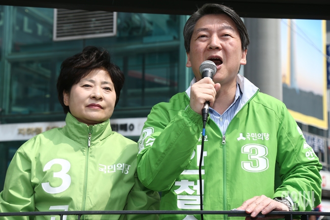 4.13 총선이 하루 앞으로 다가온 가운데 12일 오전 서울 은평구 불광역에서 고연호 국민의당 후보의 지원유세에 나선 안철수 국민의당 공동대표가 유권자들에게 지지를 호소하고 있다.