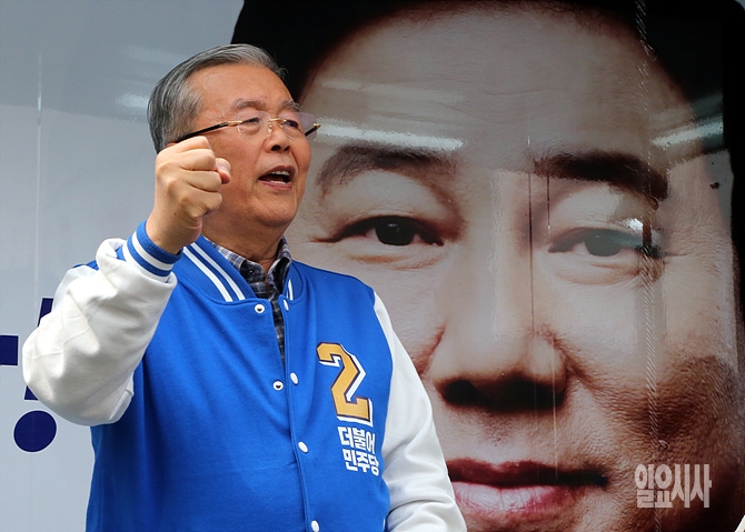 4·13 총선을 하루 앞둔 12일, 김종인 더불어민주당 비대위 대표가 서울 동작구 노량진역 앞에서 동작 갑 김병기 후보 선거지원 유세에서 한 표를 호소하고 있다.