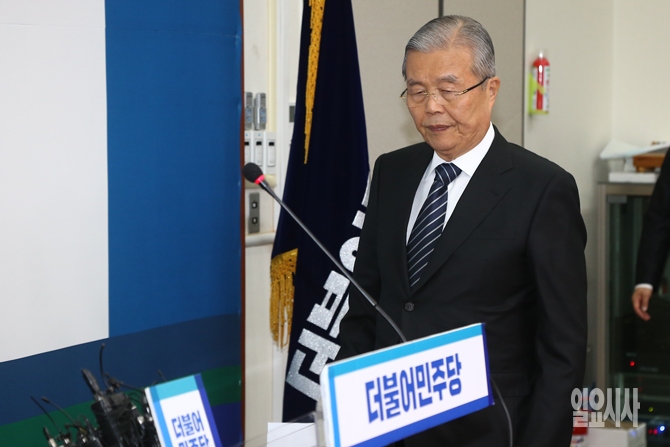 4.13 총선 이튿날인 14일 오전 서울 여의도 국회에서 열린 대국민 기자회견에 김종인 더불어민주당 비대위 대표가 입장하고 있다.