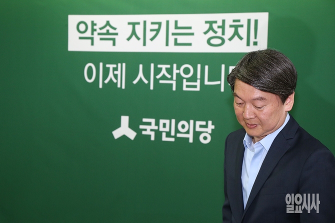 4.13 총선 이튿날인 14일 오전 서울 마포구 국민의당 당사에서 열린 국민의당 선대위 회의에 안철수 국민의당 공동대표가 입장하고 있다.