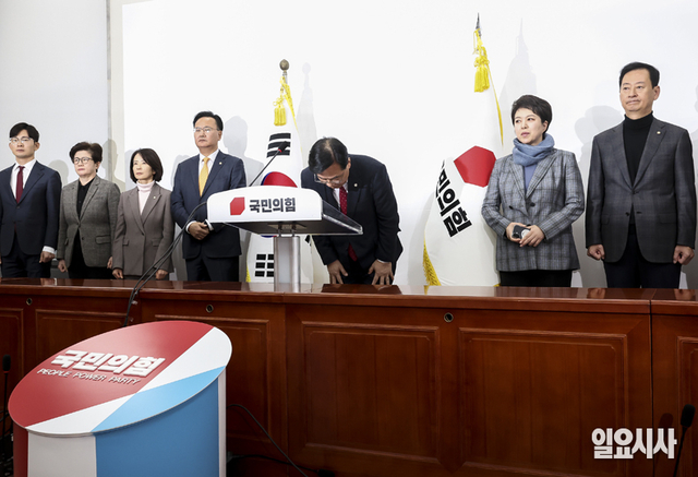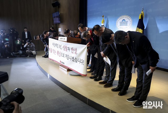 [포토] 국민의힘 초선·재선 의원들 "비상계엄 막지 못해 죄송"