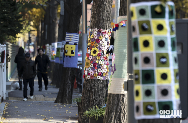 [포토] 영하 추위에도 '뜨개옷 입고' 포근한 가로수
