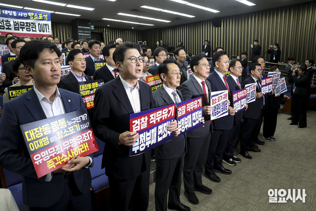 [포토] “대장동 항소 포기는 공소 취소의 시작” 장동혁 대표 규탄사