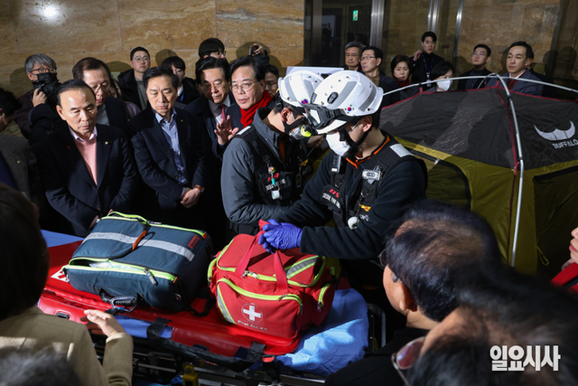 [포토] '8일 만에 단식 중단' 병원 이송되는 장동혁 대표