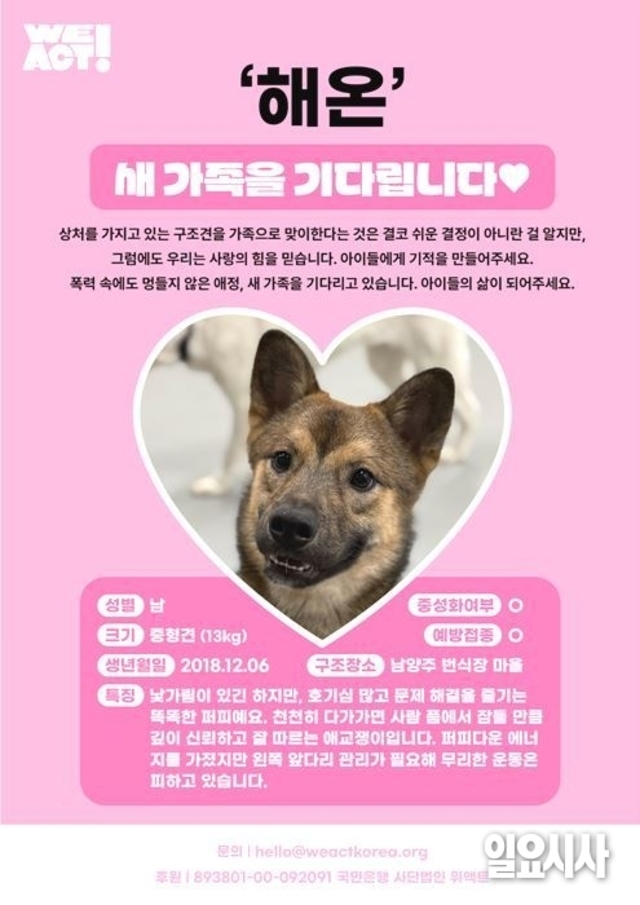 [위액트 공동기획] ‘해온’ 새 가족을 기다립니다