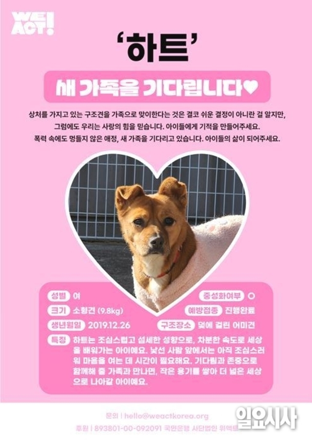 [위액트 공동기획] ‘하트’ 새 가족을 기다립니다