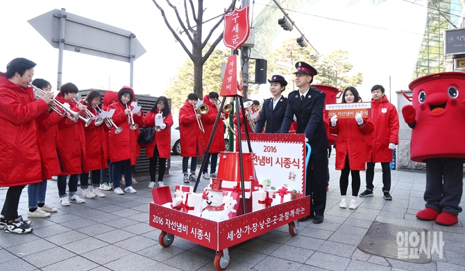 한국구세군이 1일 오전 서울 중구 서울시청 앞 서울광장에서 2016 자선냄비 시종식을 마친 후 퍼레이드를 펼치고 있다.