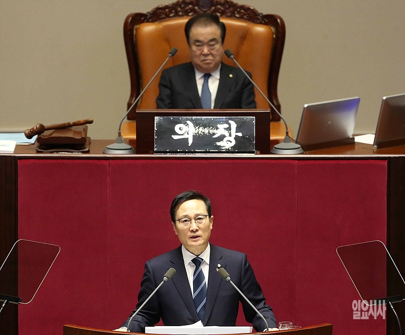 홍영표 더불어민주당 원내대표가 11일, 서울 여의도 국회 본회의장서 열린 교섭단체 대표연설서 ‘불평등과 양극화’에 대해 발언하고 있다.