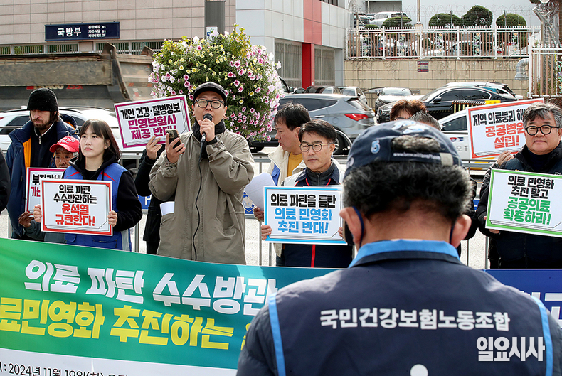 이날 무상의료운동본부 등의 관계자들은 “오늘 우리는 국민 생명에 아무 관심 없는 윤석열정권은 더는 정부로서 의미가 없음을 밝히고 위기를 이용해 추진하는 의료 민영화가 정부 ‘의료개혁’의 실체임을 알리기 위해 자리에 섰다”고 밝혔다.