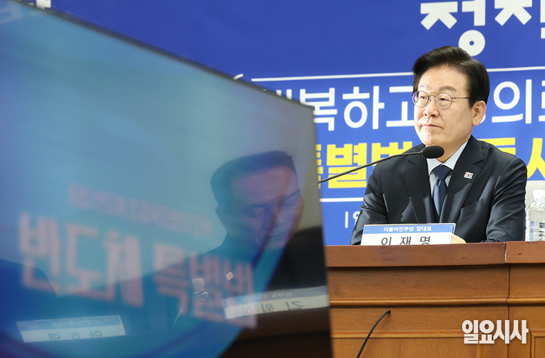 더불어민주당 이재명 대표가 3일 오전 서울 여의도 국회에서 열린 민주당 정책 디베이트 Ⅲ '행복하고 정의로운 대한민국, 반도체특별법 노동시간 적용제외 어떻게?'에서 발언하고 있다.