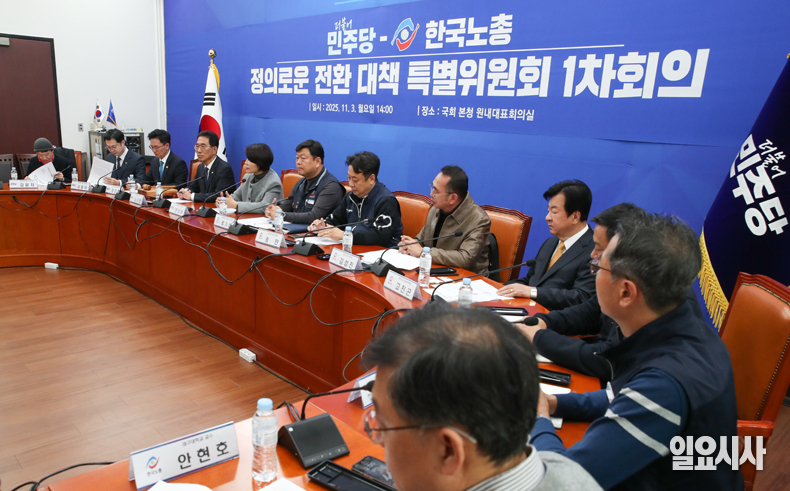 이날 열린 회의에는 더불어민주당 김 공동위원장, 한정애 정책위의장, 한국노총 사무총장인 류기섭 공동위원장 등이 참석했다.