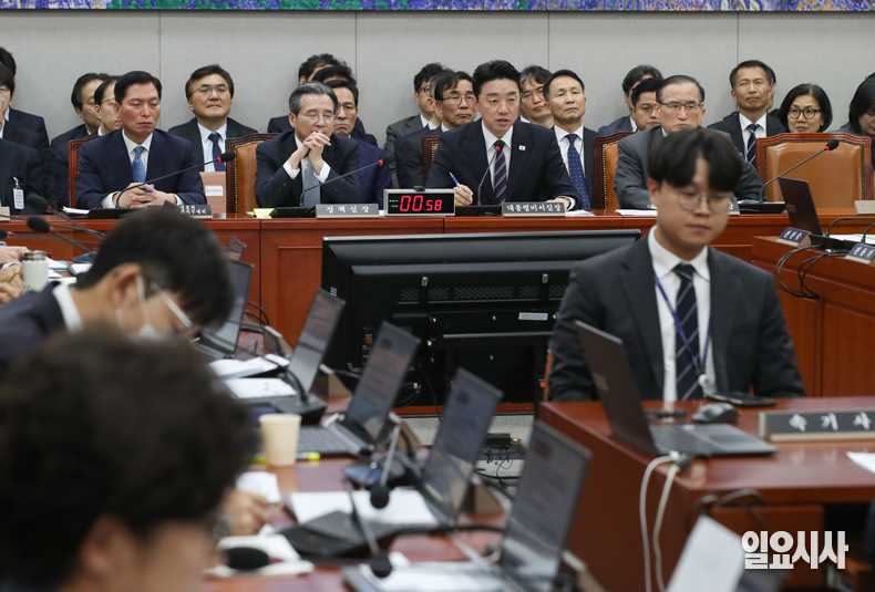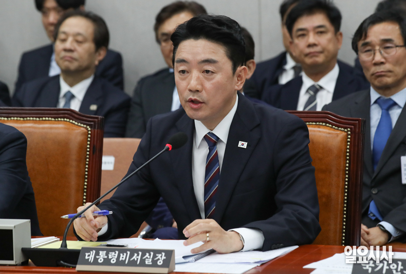 이날 국정감사에는 대통령실 강훈식 비서실장, 김용범 정책실장, 위성락 국가안보실장 등이 증인으로 출석했다.