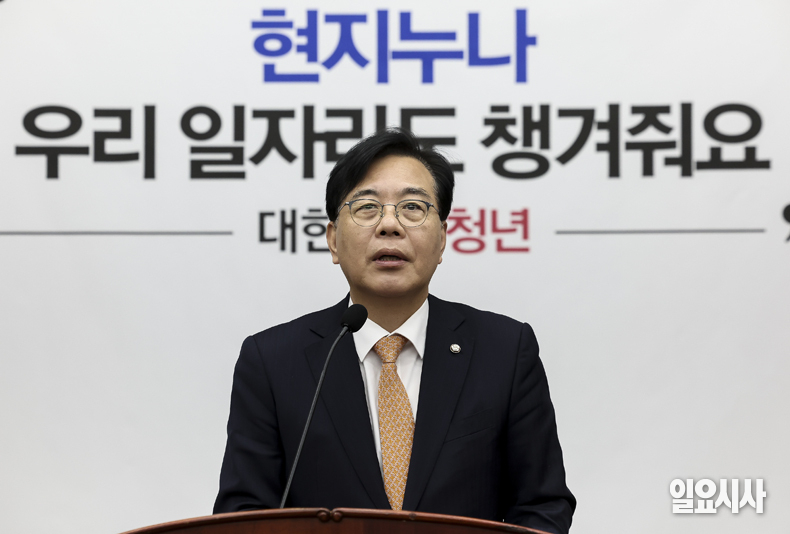 국민의힘 송언석 원내대표가 9일 오후 서울 여의도 국회에서 열린 의원총회에서 모두발언을 하고 있다.