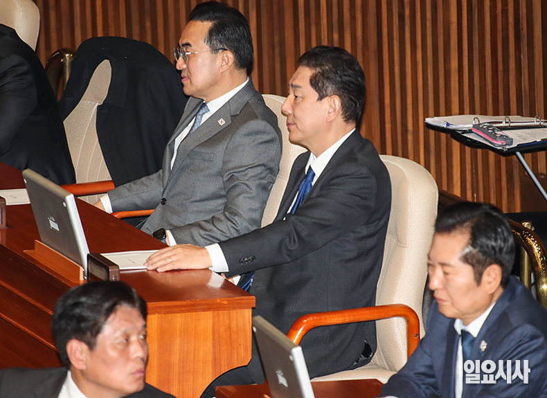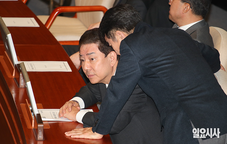 더불어민주당 김병기 전 원내대표가 30일 오후 서울 여의도 국회에서 열린 제430회 국회(임시회) 제3차 본회의에 참석해 동료 의원과 대화를 나누고 있다.