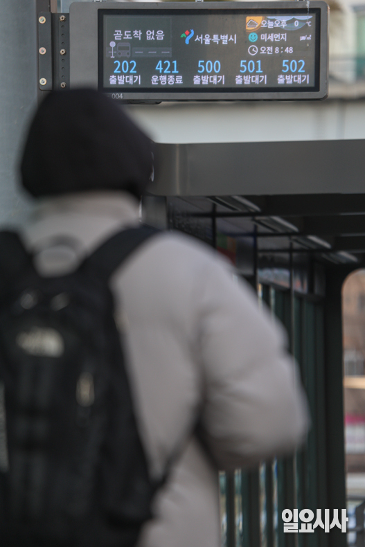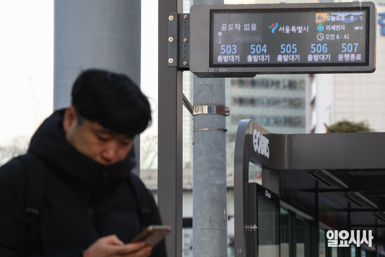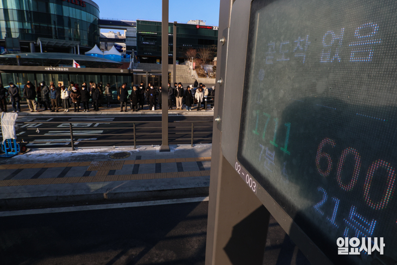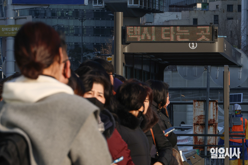 출근길 버스를 이용하지 못하는 시민들이 택시를 타기 위해 인근 승강장에 길게 줄지어 서서 기다리는 모습도 보였다.