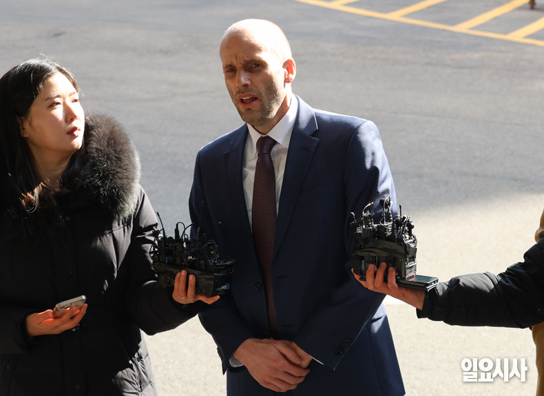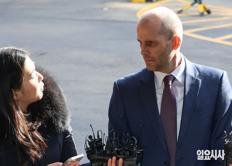 해롤드 로저스 쿠팡 한국법인 임시대표가 30일 오후 서울 종로구 서울경찰청에 ‘셀프 조사’ 관련 증거 인멸 등 혐의와 관련된 조사를 받기 위해 피고발인 신분으로 출석하면서 입장을 밝히고 있다.