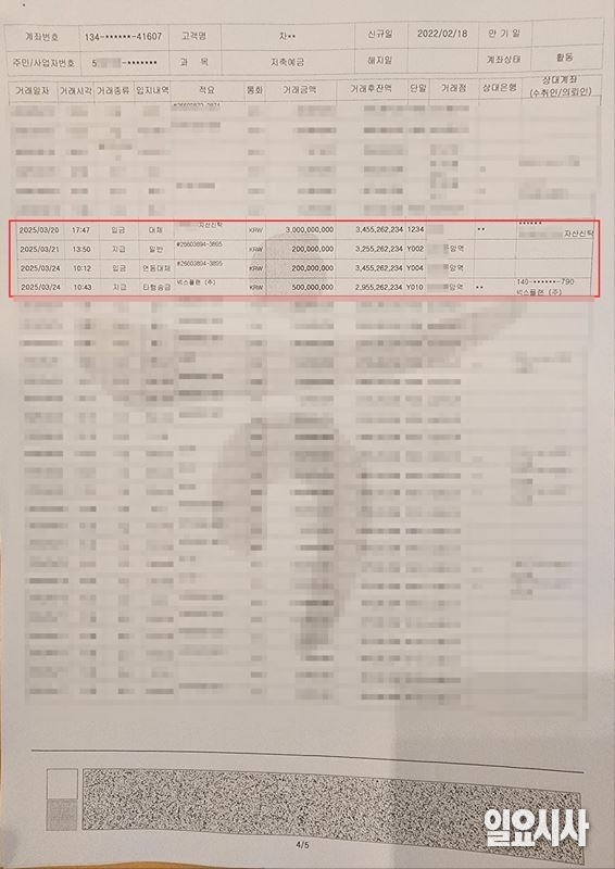 이후 2025년 3월20일 오후 5시47분 ‘공급계약 해제에 따른 분양대금 반환’ 명목으로 30억원이 계좌로 반환됐다.
