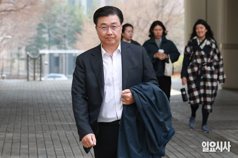 홍장원 전 국가정보원 1차장이 16일 오후 서울 서초구 서울중앙지방법원에서 열린 조태용 전 국가정보원장의 1심 공판에 증인으로 출석하고 있다.