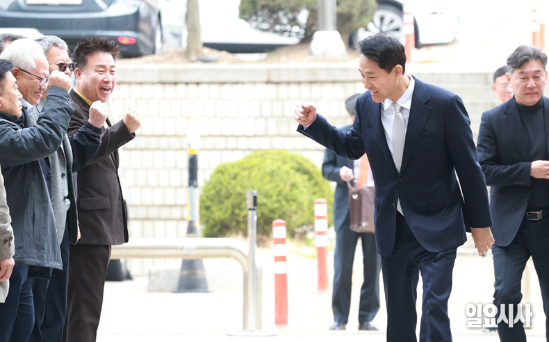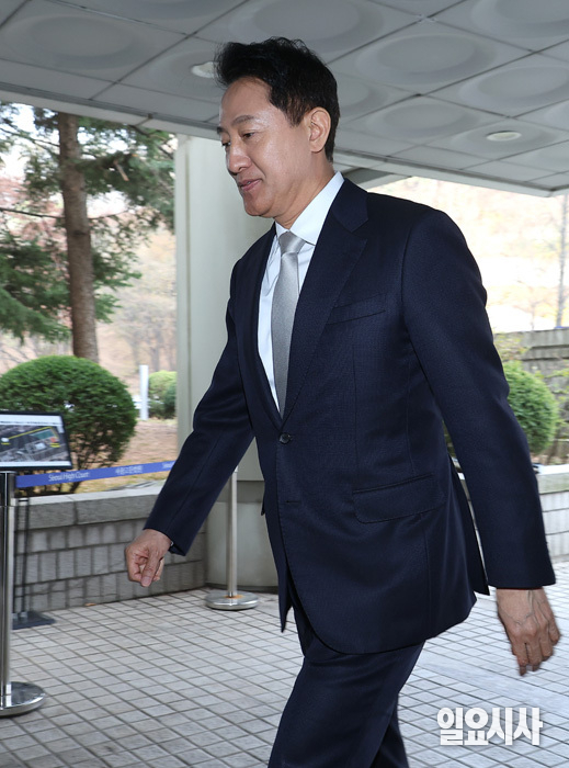 오세훈 서울시장이 3일 오전 서울 서초구 서울중앙지방법원에서 열린 ‘여론조사비 대납 의혹’ 사건 1심 공판에 출석하고 있다.