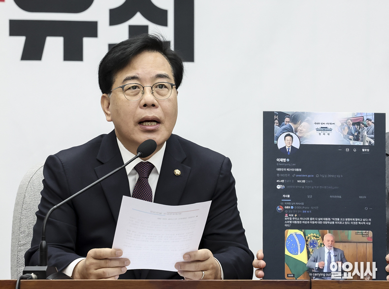 이날 송 원내대표는 이재명 대표의 외교 관련 페이스북 게시물과 관련해 비판했다.