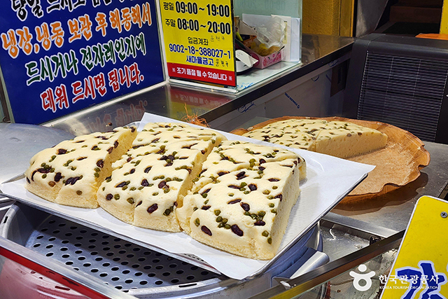 갓 쪄낸 따끈한 상태로 한 입 베어 물면 고소한 맛과 폭신한 식감이 입안 가득 퍼진다. 자극적이지 않은 은은한 단맛 덕분에, 부담 없이 즐기기 좋은 시장의 대표 주전부리로 자리 잡았다.