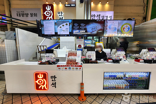 속초 하면 빼놓을 수 없는 이름, ‘만석닭강정’ 또한 시장 투어의 핵심이다. 시장 안에서도 지점이 여러 개 있는 인기 만점 강정집이다. 시장을 걷다 보면 닭강정 상자를 든 사람들이 간간이 보이는데 식어도 바삭한 식감을 유지하는 특유의 비법 덕분에 전국적인 명성을 얻었다.