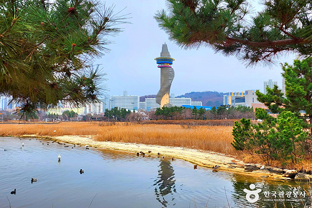 속초 시내 중심에 자리 잡은 청초호는 소가 누워있는 형상을 닮은 거대한 석호이다. 호수를 중심으로 조성된 공원은 남녀노소 누구나 편안하게 걸을 수 있는 평탄한 산책로와 다채로운 볼거리가 있는 도시 속 쉼터이다. 나선형 모양의 독특한 외관을 자랑하는 엑스포타워는 시선을 사로잡는다. 강원도의 미래를 상징하는 엑스포타워는 높이 73.4m로, 속초의 랜드마크 역할을 하고 있다.