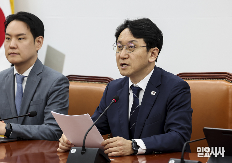 더불어민주당 천준호 원내대표 권한대행이 28일 서울 여의도 국회에서 열린 원내대책회의에서 발언하고 있다.