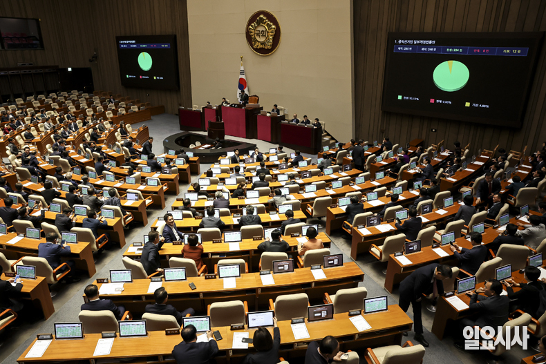 28일 서울 여의도 국회에서 열린 제434회 국회(임시회) 제8차 본회의에서 공직선거법 일부개정법률안이 통과되고 있다.
